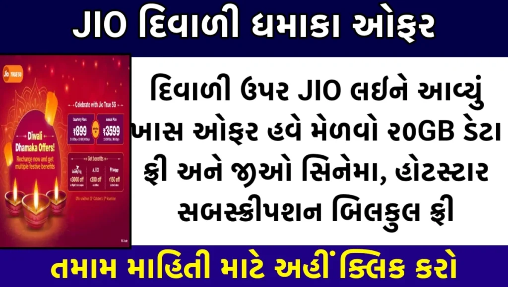 1 thought on “JIO Diwali Offer 2025: મેળવો ફ્રી 20 GB ડેટા, આજે જ રીચાર્જ કરો”